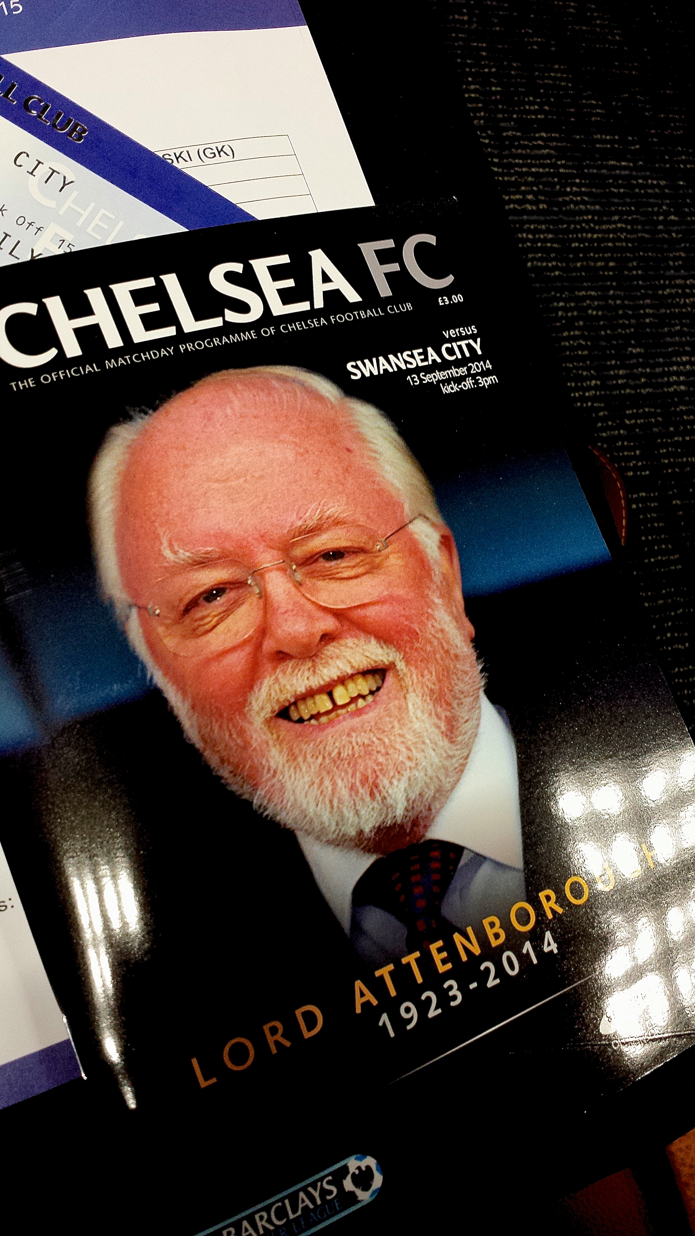 Na naslovnici Richard Attenborough, pred tednoma preminuli slavni filmski režiser, častni predsednik klub in eden tistih, ki je Chelsea CF v sedemdesetih letih minulega stoletja pomagal rešiti pred bankrotom in zelo verjetnim propadom. Lord Attenborough je meddrugim avtor z oskarjem nagrajenega filmskega epa Gandhi