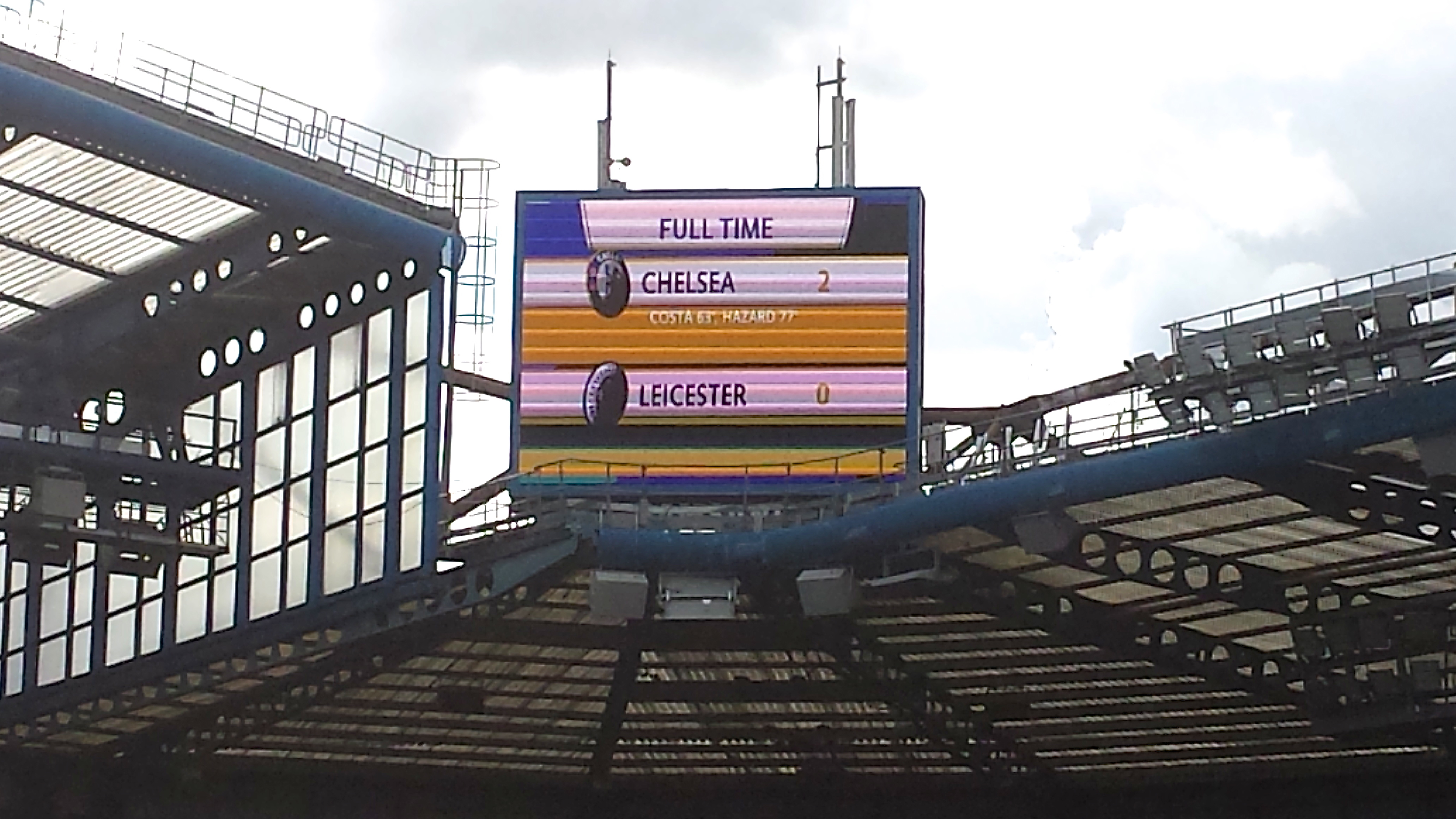 Chelsea je kot izrazit favorit proti Leicestru v prvem delu tekme trudil zaman, drugega pa začel in tudi nadaljeval silovito. Zadetka Diega Coste in Edena Hazarda sta tekmo izpeljala v domačo zmago. Če bi jo ocenjevali le po zadnjih 45-ih minutah, bi to bila neznosno lahka zmaga modrih.