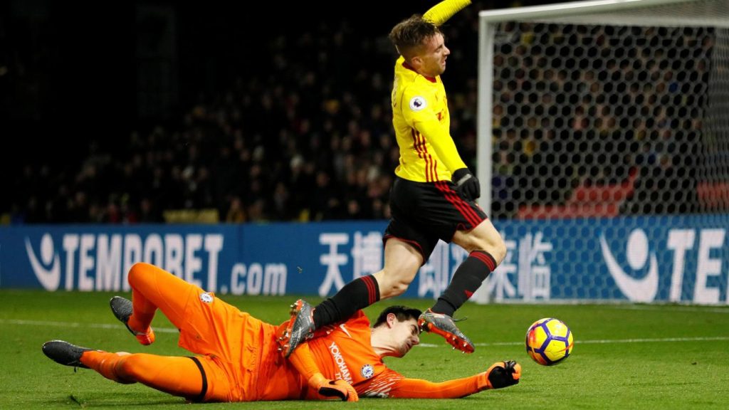 Na zadnji tekmi 26.kroga je Watford pokazal, da se vrača – vrača v sredino tabele in to s pametno in preudarno igro. Podobno na-moč in z veliko volje kot oktobra Arsenal, je v ponedeljek uspel sesuti tudi Chelsea. Že od štarta zelo površen Tiemoueje Bakayoko (zapravil je kar 7 žog) je bil zaradi dveh (spet soft) rumenih kartonov izključen že po četrtini srečanja. Nato je iz 11-metrovke (Tibo Courtois je pokosil pobeglega Gerarda Deulofeuja) zabil Troy Deeney. Njegova dva iztegnjena sredinca ob proslavljanju zadetka disciplinska komicija FA že obravnava. Po odmoru se je Chelsea opogumil in preko Edena Hazarda celo izenačil. V zadnjih desetih minutah pa so se prvaki nepričakovano ponovno zmedli in le pokleknili. Watford je prav brezbrižno potem prvakom nasul še 3 komade iz (pol)konter – Daryl Janmaart, Deulofeu in Roberto Pereyra so bili strelci. Watford se dviga, Chelsea pa po drugem najhujšem sezonskem porazu tone oziroma se skrivaje klati tam nekje v prvem grmu. Super tekma za finale super kroga. Še bo takšnih ali pa še boljših!