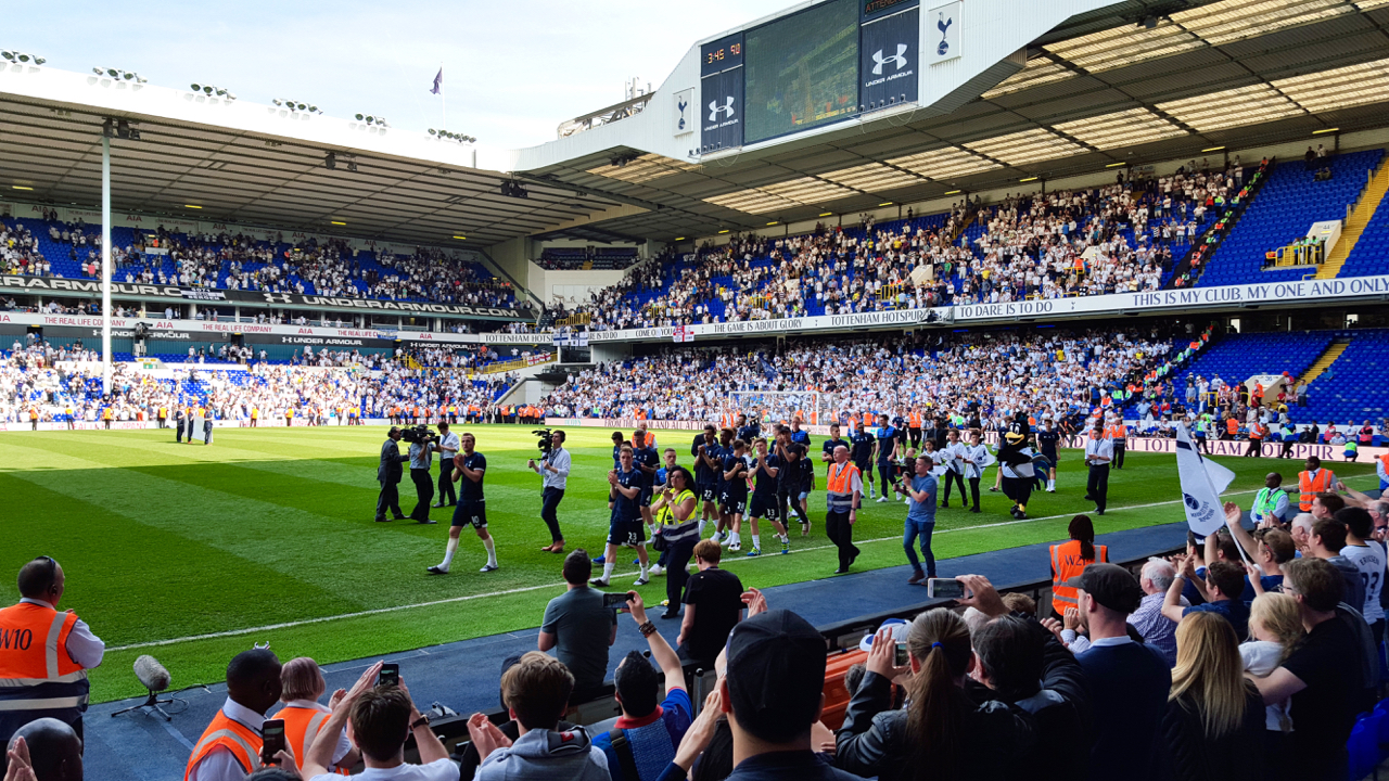 Po koncu zadnje tekme na domačem igrišču so se Tottenhamovci v spremstvu otrok sprehodili mimo tribun in se tako zahvalili za vsosezonsko podboro. Zahvalnostni krog pa je po porazu vselej bolj žnj. Spursi so s šlamaprijami med matchem poskrbeli, da je bil prav tak.
