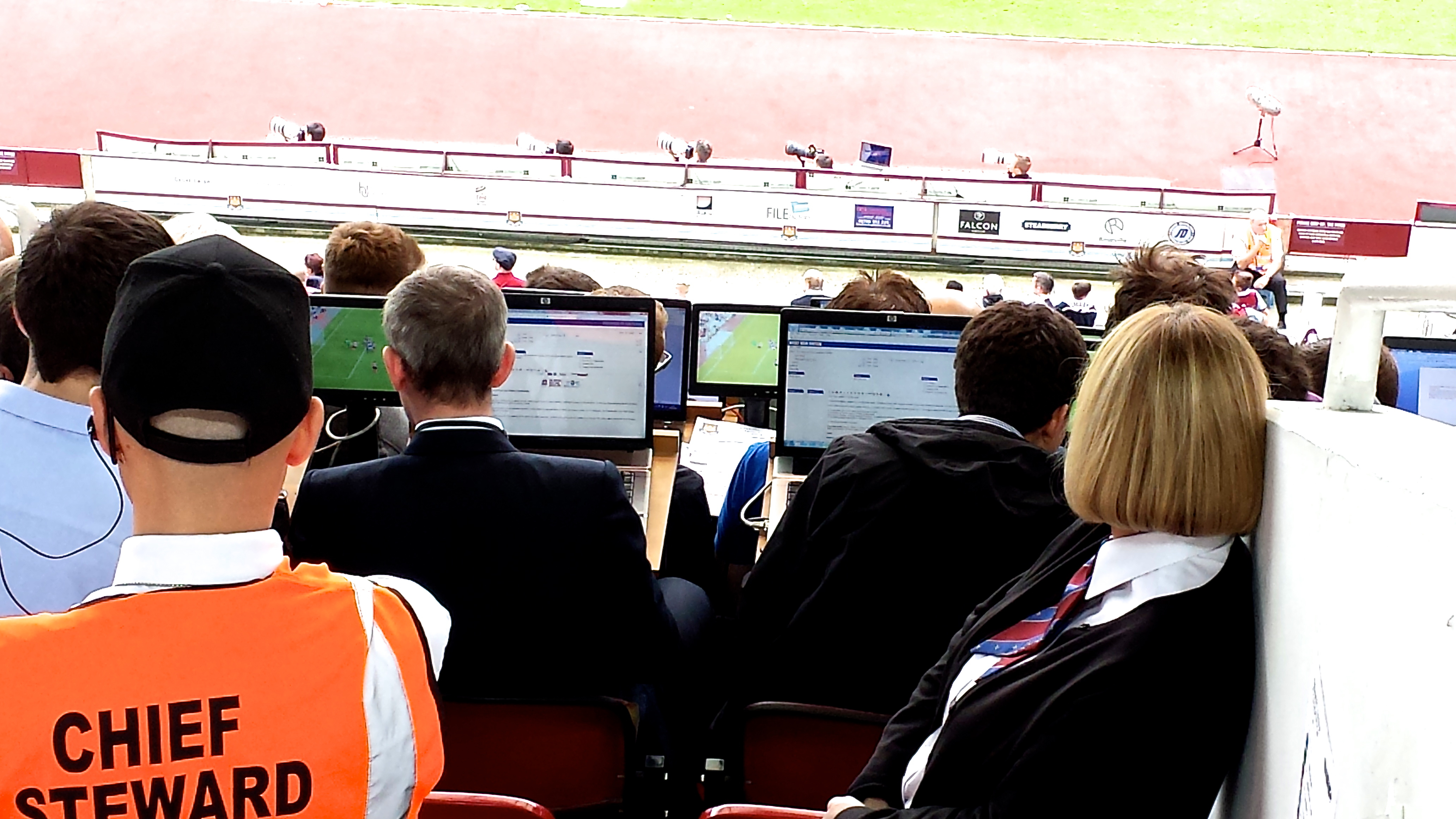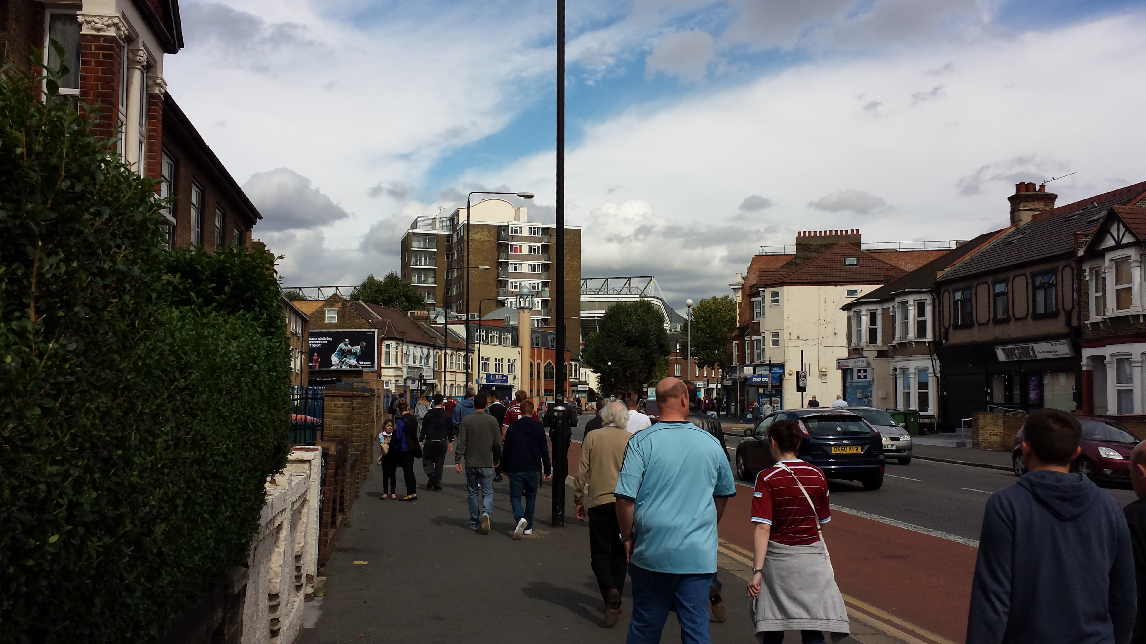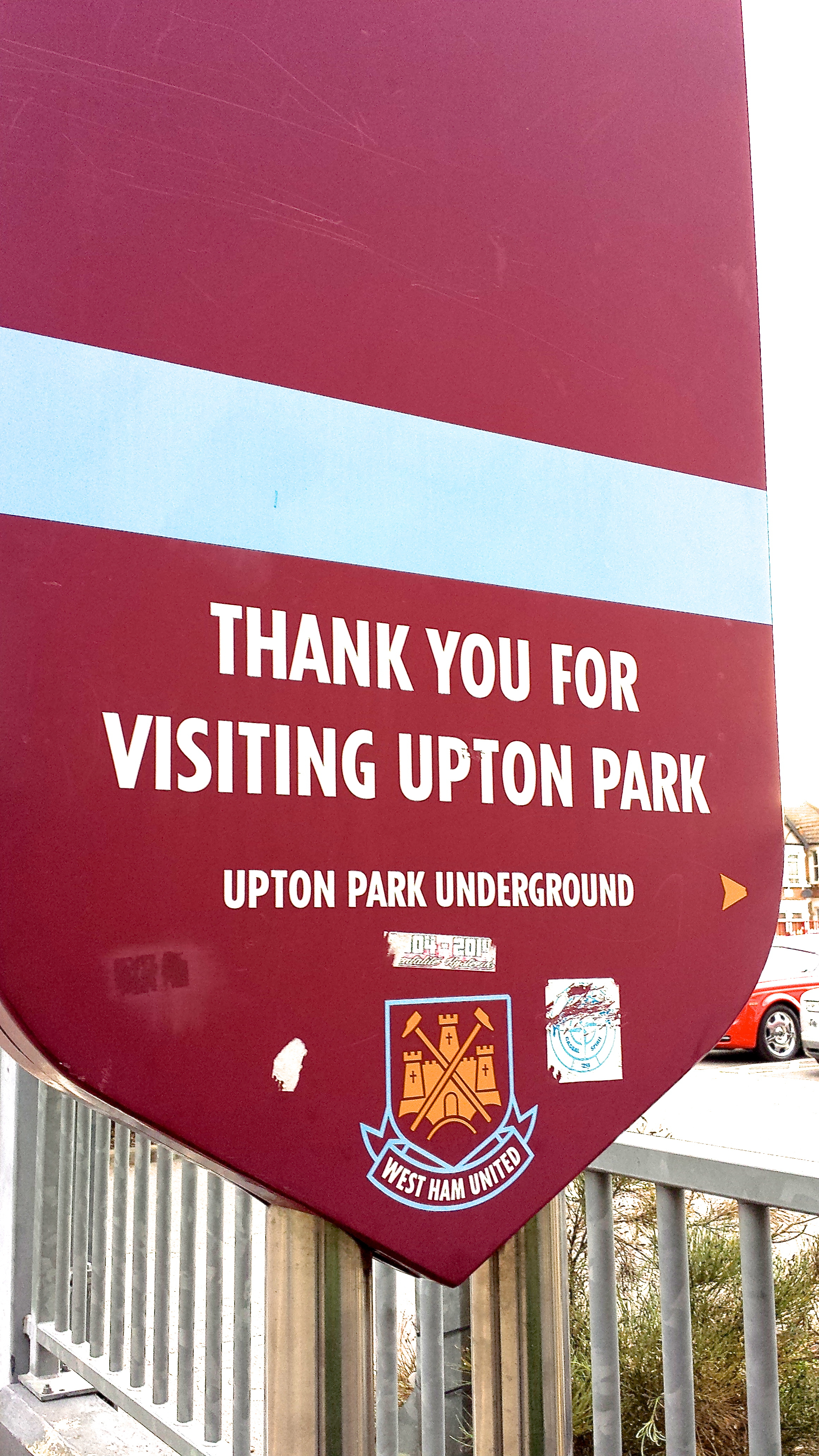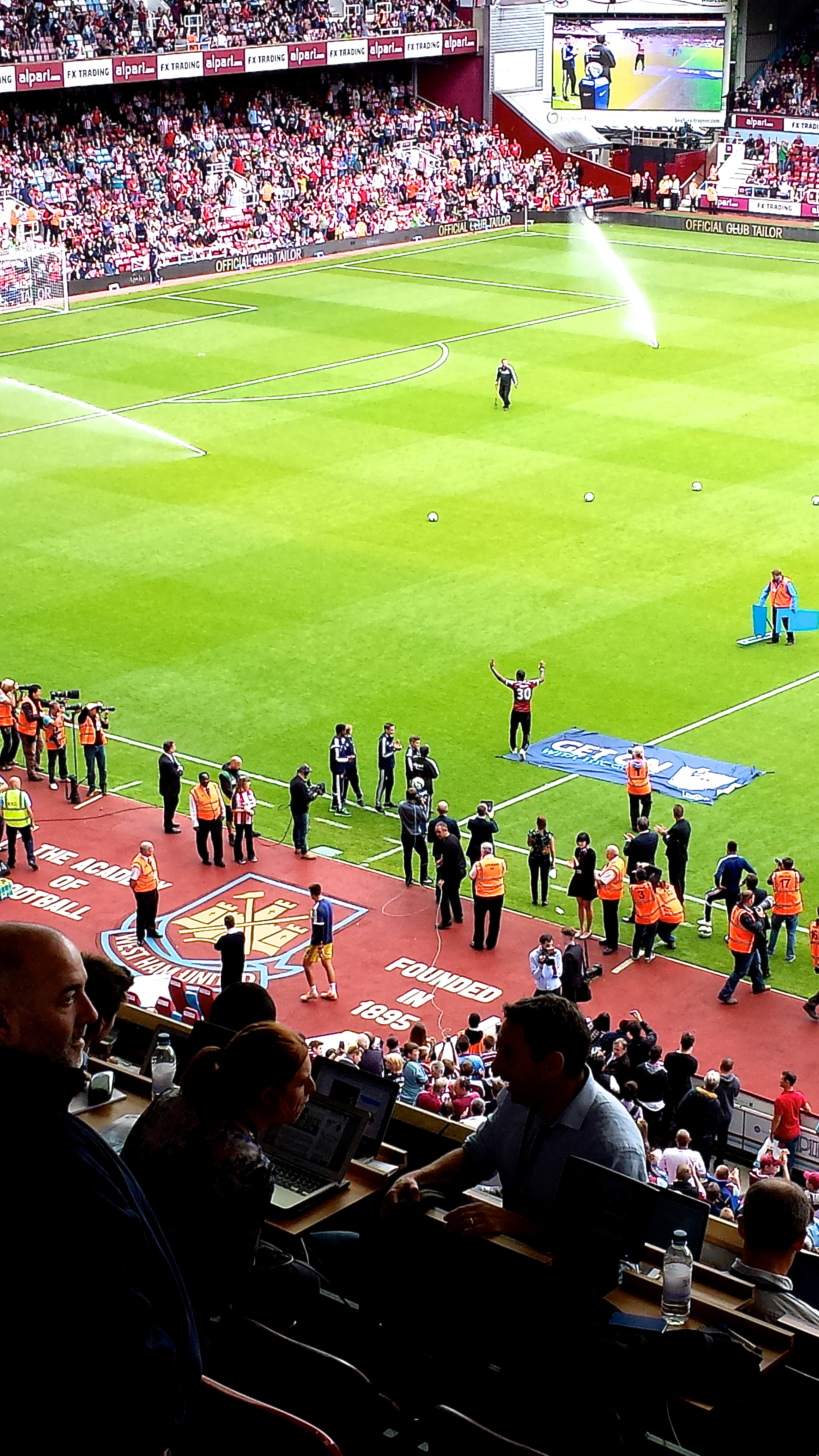 Skoraj na cliju. V ozadju slavni spomenik četverici West Hamovih velikanov